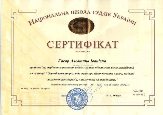 Про проходження навчання Косар А.І. отримала відповідні сертифікати.
